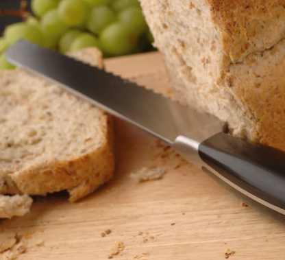 პურის საჭრელი დანა დამზადებულია უჟანგავი ფოლადის პირისგან,