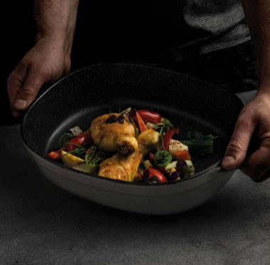 მასალა უზრუნველყოფს კარგად ცხობას,ფართო სახელურებით, გამძლე მასალა, ჭურჭლის სარეცხ მანქანისთვის უსაფრთხო
